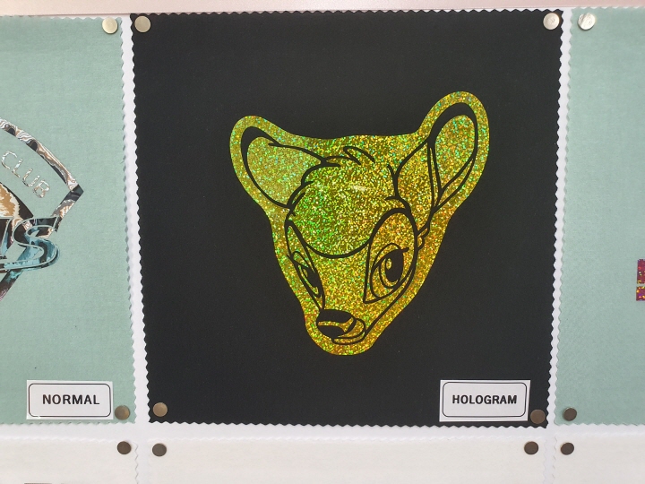 A hologram heat transfer film creates three-dimensional prism-like effect to make your design shine and eye-catching.